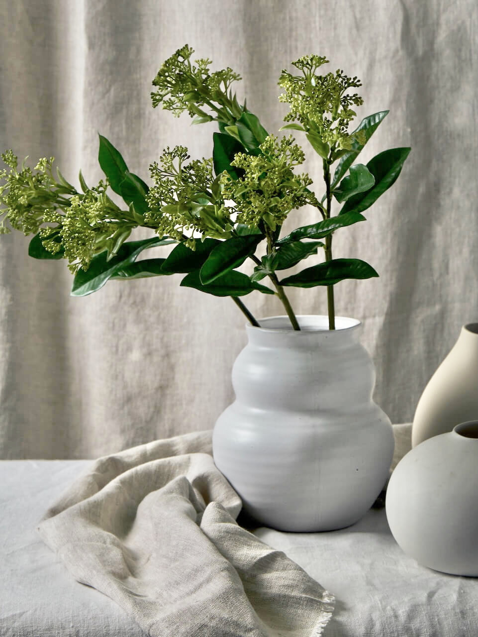 A faux version of this lovely shrub, our Faux Skimmia Stem is a wonderful filler for your display of faux flowers. The open head of small buds helps create a light & airy feel whilst adding fullness to your bouquet.