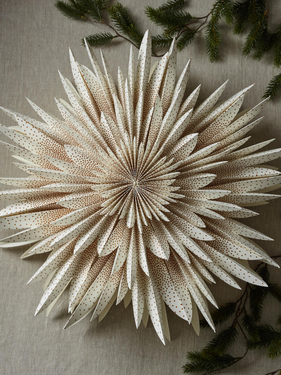A wonderful addition to our paper decoration range, helping you make a beautiful statement display this Christmas. Prefect to compliment the rest of the range, this design is also available in paper stars too. A thick dense piece that has been handcrafted from recycled paper. Presented in a hard cardboard box you can store this beautiful piece flat and bring out year after year.