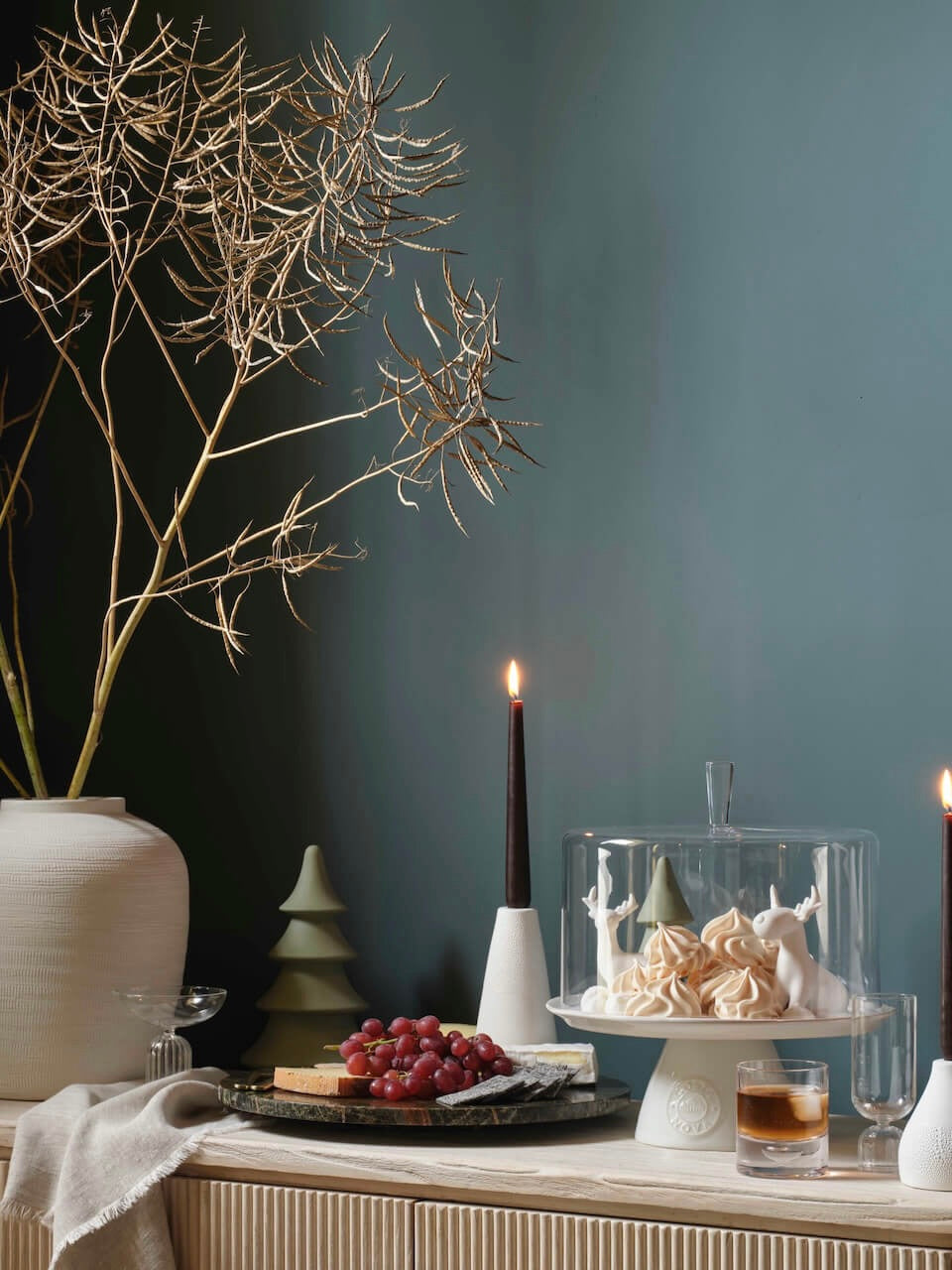 A magnificent modern glass cloche which perfectly complements our stoneware cake stand. A statement piece with clean lines you can use to place over your cheeseboard or cake or alternatively use to style your favourite key Christmas pieces and create a stunning display.