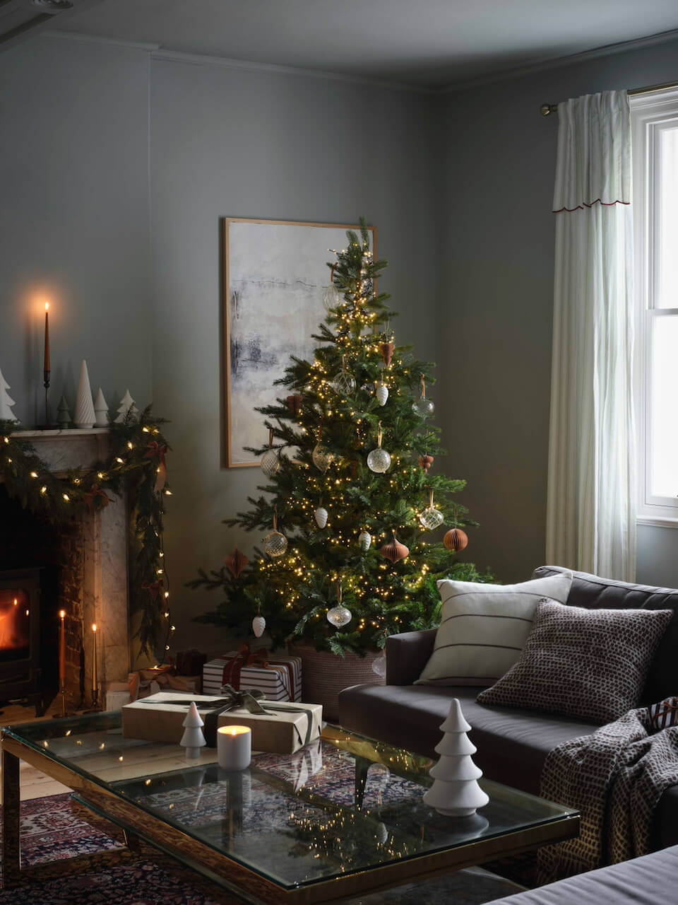 Add a touch of elegance to your tree this year with these large glass baubles. Clear glass combines with beautifully soft champagne glitter swirl to create a timeless look which is finished off with a luxurious gold velvet ribbon.