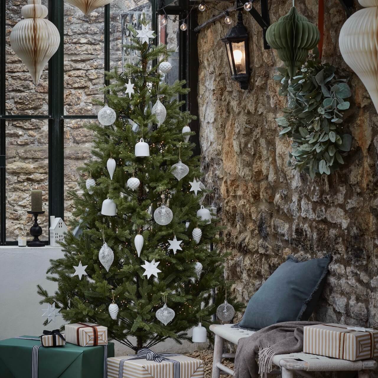 A stunning set of three tree decorations with an onion design made from matt white ceramic. A wonderful way to add a Scandinavian style to your tree.